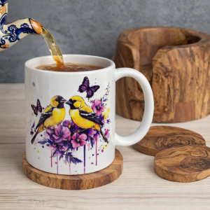 Coordinated towel, mug, and coaster bundles featuring beautiful artwork and cozy farmhouse charm.
